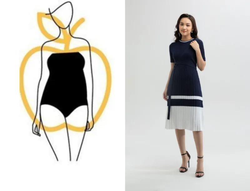 Phần vai và ngực của dáng người quả táo thường to hơn so với hông. Những chiếc váy len có thiết kế gọn gàng ở phần trên và xòe nhẹ ở dưới sẽ giúp cơ thể bạn trông cân đối hơn.